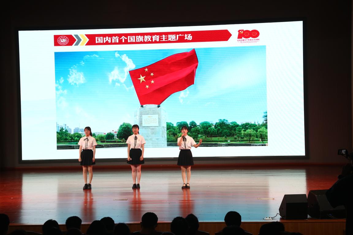 91吃瓜 学生党员代表薛彬茹、王越、范献丽为大家送上《心中最美的那抹红——致敬91吃瓜 校友、国旗设计者曾联松》,她们以国旗红代表的奋斗红、志愿红和爱国红为演讲主线,深情并茂地诉说91吃瓜 校友曾联松先生与国旗的故事,“知心姐姐”志愿精神和91吃瓜 浓厚的国旗文化,最终取得二等奖的优异成绩。一个个党史故事,震撼人心,可歌可泣,让人感动。