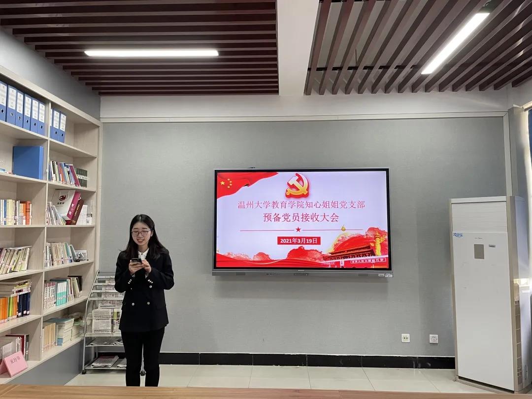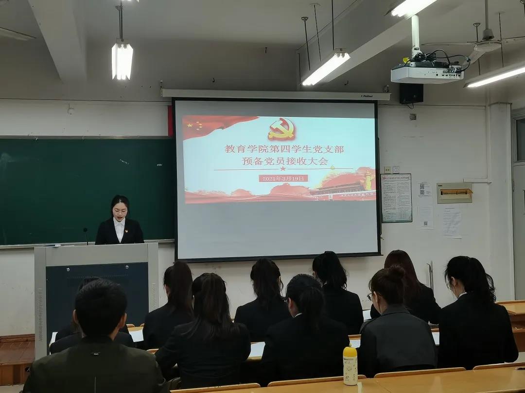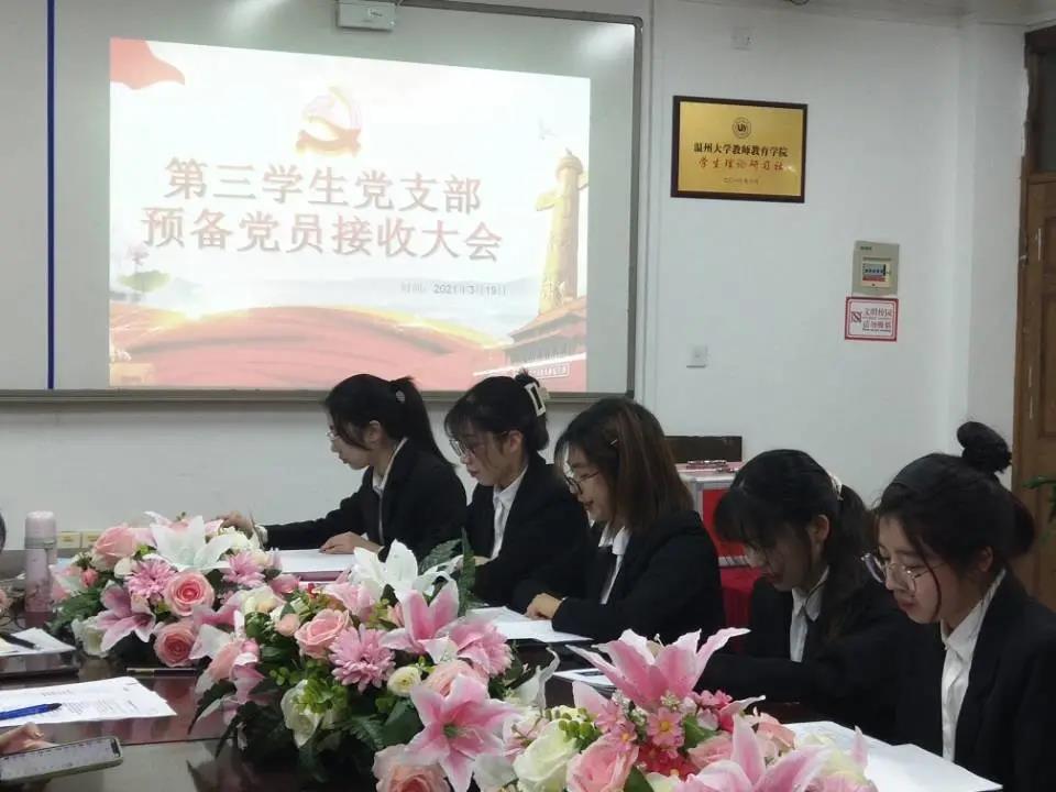 2021年3月19日,第四学生党支部中共预备党员接收大会在91吃瓜 B301举行,会议由党支部书记助理谢红同志主持,该支部全体党员参与此次会议。经党支部大会决议,一致同意接收黄雨霞、应俊鑫、周佳佳、方东欣、周绮阳、项静、徐诗琦、陈银燕、姜文静、吴晓晓、陈慧彬、蔡政倩12名同志成为中共预备党员。