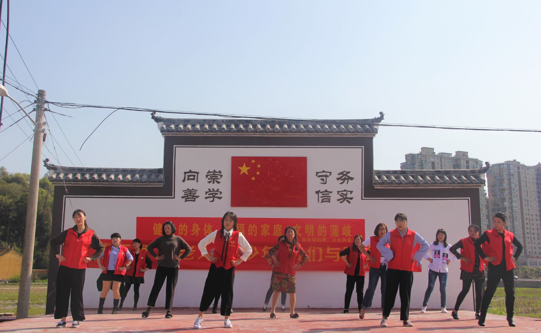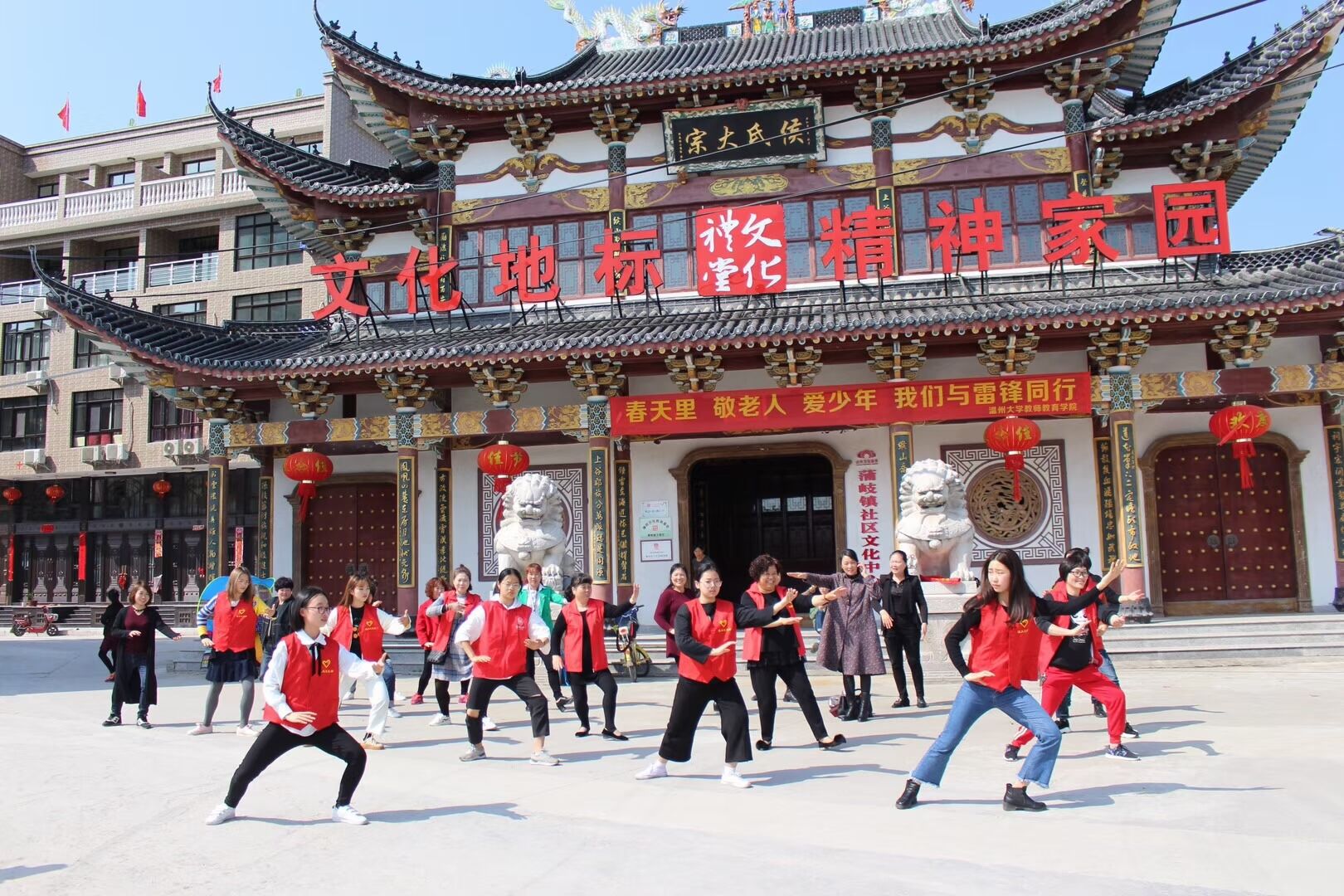 暖阳下,教院的志愿者们此次前往温州乐清市蒲岐镇上、下侯宅村开展了志愿活动。志愿者们热情地教老人们练着广场舞和太极拳。“野马分鬃”、“白鹤亮翅”、“搂膝拗步”,志愿者站在队首分步教授太极拳的招式,老人们跟着一招一式地比划;在上侯宅文化礼堂的舞台上,悠扬的音乐响彻整个礼堂,阿姨们在志愿者的带领下舞动着自己的身体,"伸臂、踢腿、扭腰……"经过不断的练习,她们逐渐掌握了每个动作的要领。老人们兴致高涨,学得有模有样,别有一番风韵。