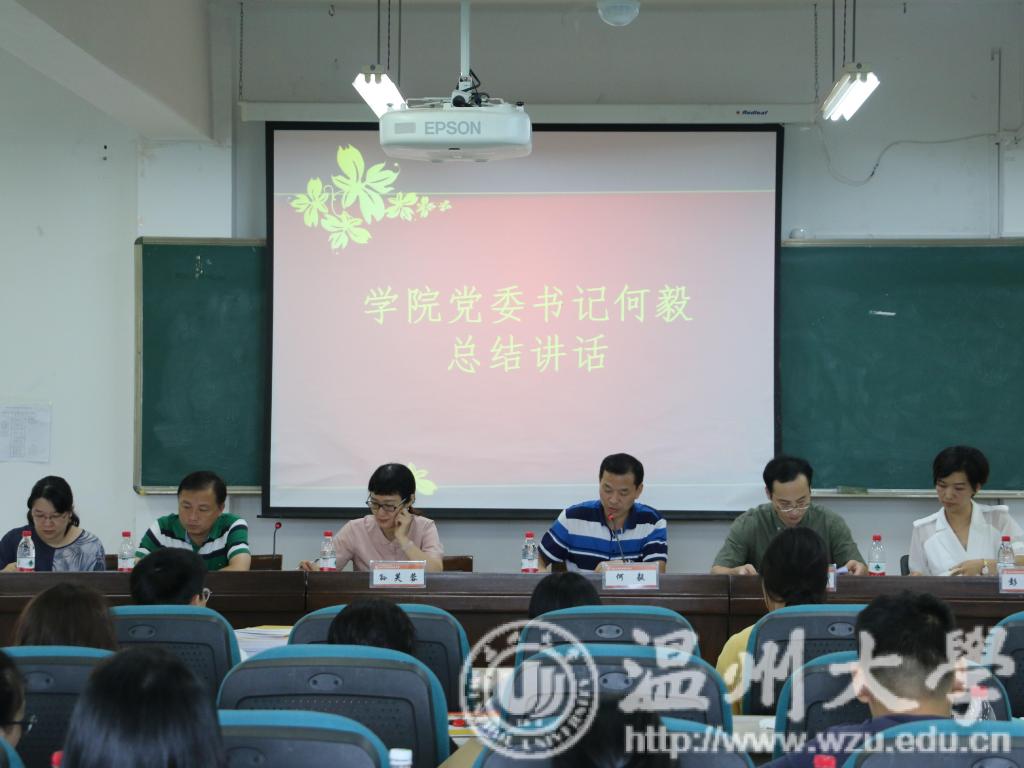 学工办主任严晓秋就2018-2019学年第二学期学生工作进行总结。她从学风建设、创业工作,团学工作、校友链接、学院宣传等五个方面作简要汇报,并对2019届毕业生初次就业率、考编考研等作说明。会上,她表示学工办作为学院思政工作的主要力量,将以身作则、顾全大局、乐于奉献,在学院领导与老师们的支持下不断推进学生工作的进程,实现全院更好的发展。