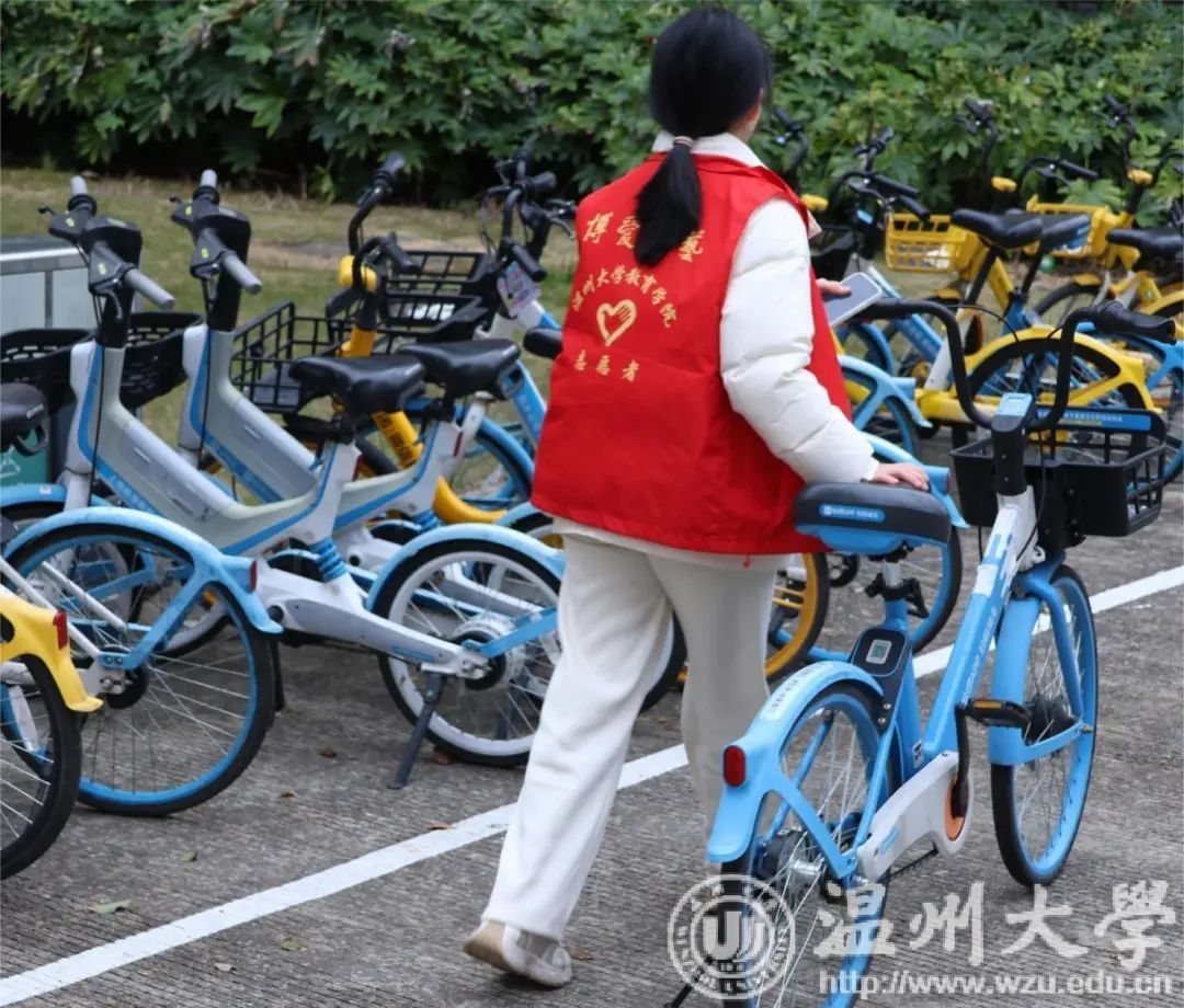 学生们需要把自行车有序停放在指定的停车区域,而志愿者则需要将原本不规范摆放的车辆,移动到正确地点,进行规范整齐摆放;或者在一旁引导,指挥错误停放自行车的同学将车辆正确摆放,耐心提醒同学们注意停车方向一致、不占用通道、锁好车辆等细节,确保自行车停放既美观又安全。