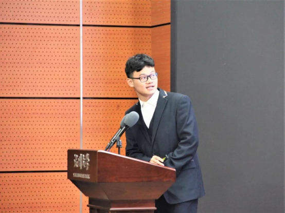 91吃瓜 团委学生会主席胡潘栋首先代表主席团上台发言。他回顾了团学成员从初次遇见到携手前行的点滴,罗列出本学期团学开展的赛事活动与获得的诸多荣誉,最后送上主席团成员们的暖心寄语。