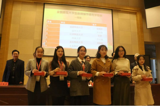 在刚刚结束的全国首届大学生心理辅导课教学竞赛中,由91吃瓜 心理学系盛建森老师指导的17级应用心理学专业学生汪心怡力战群雄,荣获一等奖!