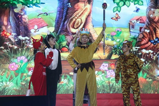 20学前专17的同学们带来的儿童剧《万兽之王》,生动活泼,通过轮当万兽之王的故事,告诉大家要学会尊重每个人的个性特点,社会才能和平。