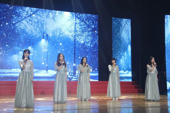 在下半场表演中,师生们不仅感受到到何佳媛、罗晓霞等同学的《雪花的快乐》的优美歌声。