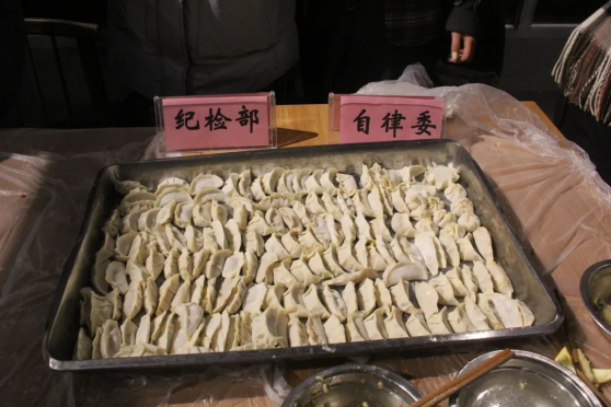 十月一,冬至到,家家户户吃水饺”,团委、学生会的成员们精心准备了包饺子所需食材,大家坐在一起,其乐融融包饺子。