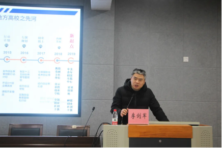 李剑军讲解“互联网+”赛事及政策。他详细讲述了高教赛道、红旅赛道、职教赛道创意组项目的评审要点以及网评、会评所需材料和展示形式。最后,他以两个具有代表性的金奖项目——云木和三昧动漫为例,带领大家领略了优秀创业作品的风采。