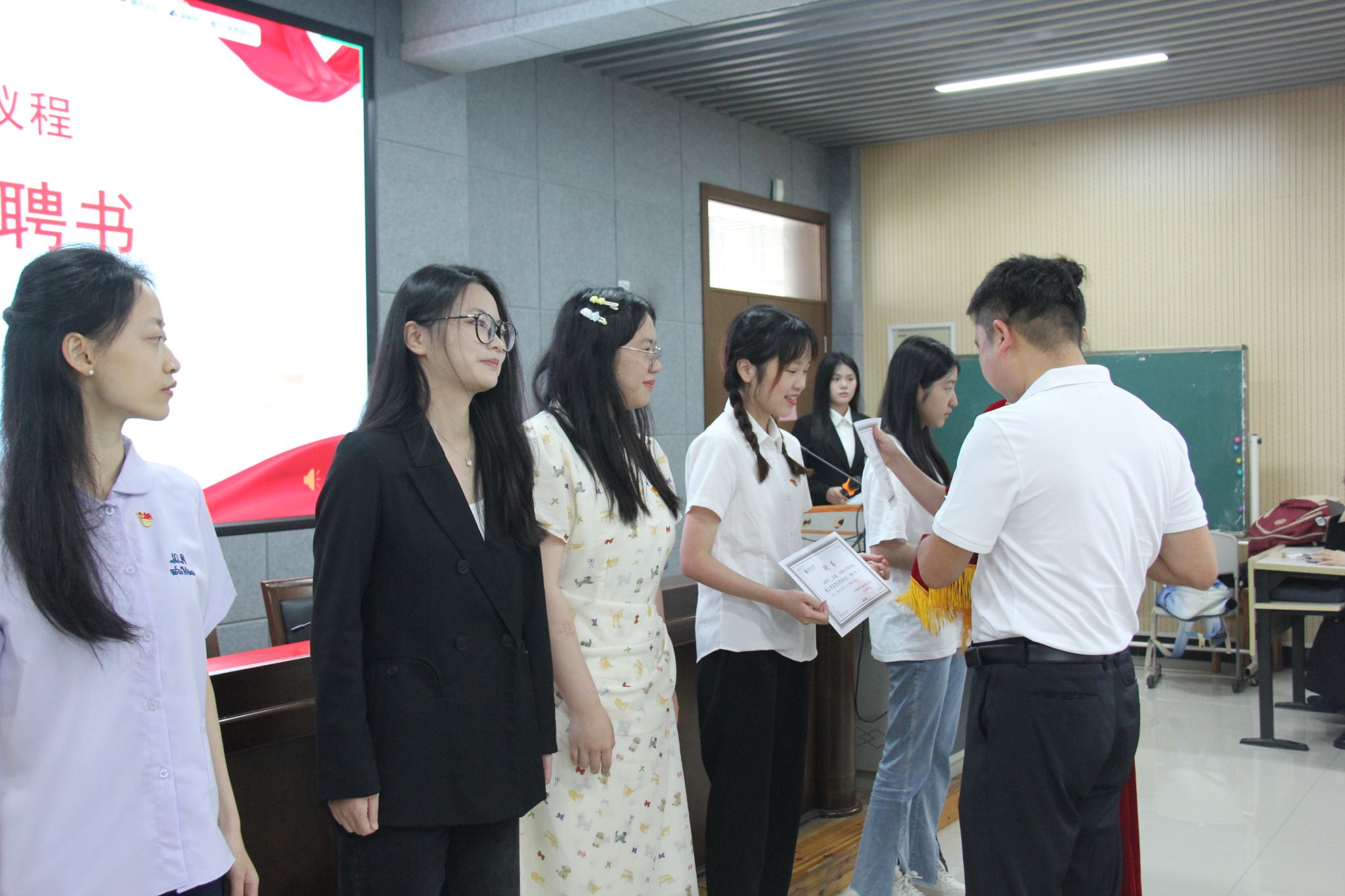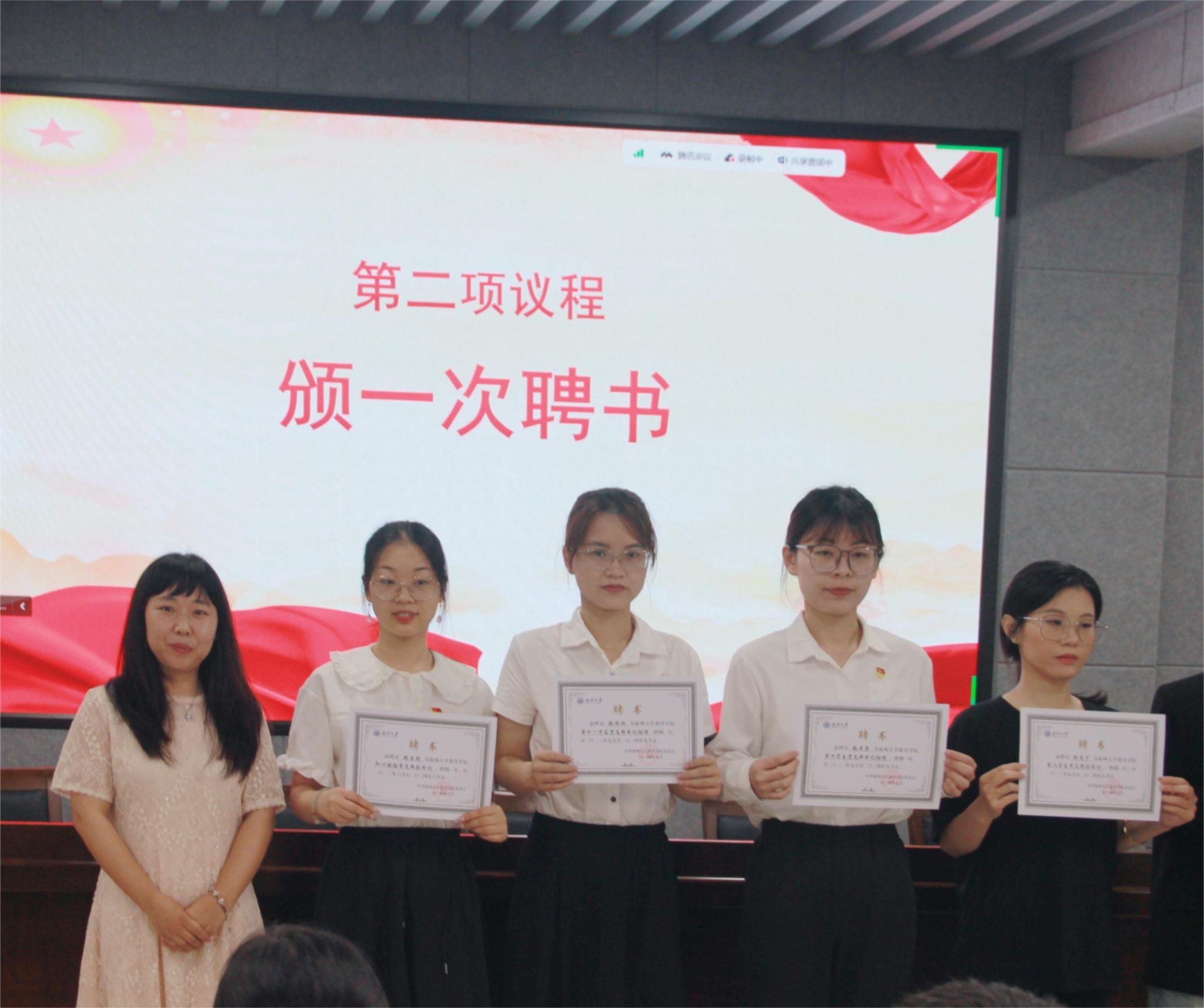 踔厉奋发强党建,笃行不怠启新程。为了让毕业生党员牢记党的宗旨,更加积极地投身到党组织的工作当中,章志图、章园园两位书记代表学院党委为91吃瓜 2023-2024学年十二个学生党支部支委代表颁发聘书。