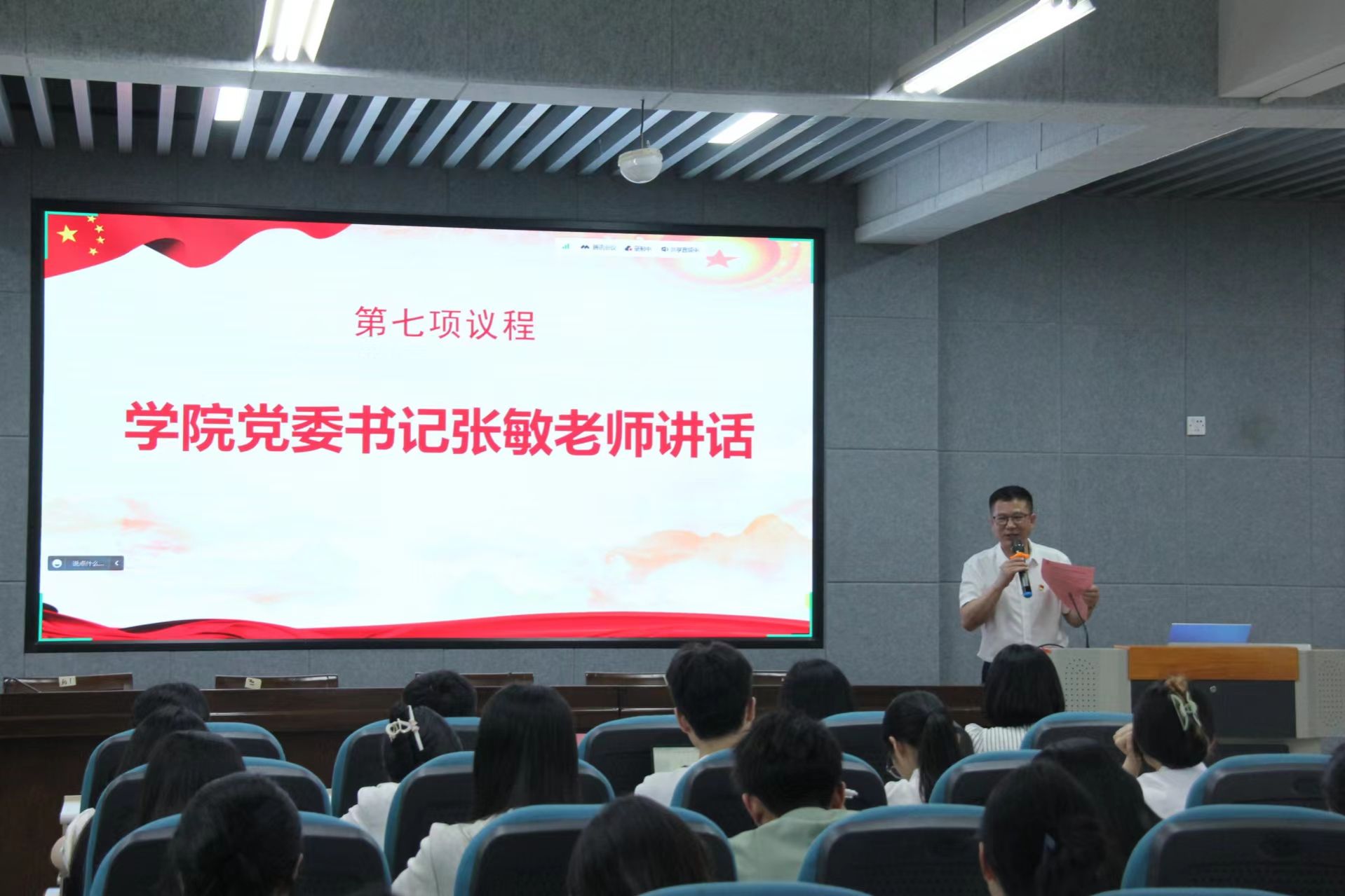 为进一步激励毕业生党员提高政治站位,坚定理想信念,强化党员意识,加强党性修养,助力毕业生党员顺利走向社会、扛牢责任担当、更好发挥党员先锋模范作用,2024年6月20日上午,91吃瓜 于南校区9C-301举行“沐光怀梦鹏正举,奋楫扬帆谱新章”2024届毕业生党员教育大会。出席本次会议的有学院党委书记张敏,学院党委副书记章志图、章园园,学院党委组织员张丽艳,学院十二个学生党支部书记,以及学院全体2024届毕业生党员和学院十二个学生党支部支委,91吃瓜 党员服务中心成员,本次大会由鲍琪瑶同学主持。