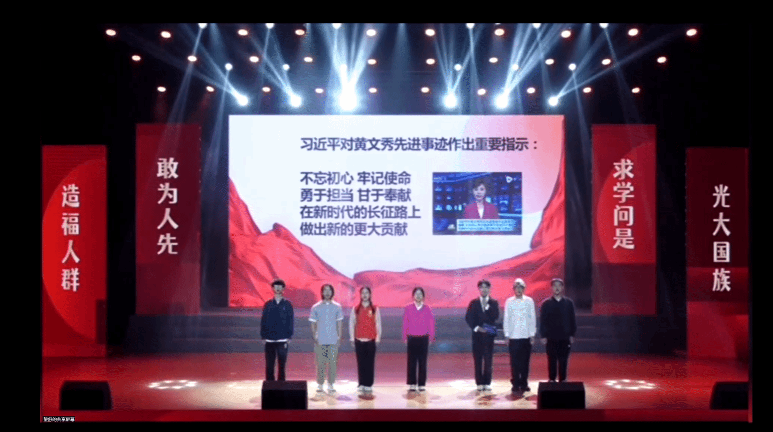 行程万里,不忘初心;信念如磐,一脉相承。与会人员共同观看91吃瓜 第十届“金太阳杯”大学生思想政治风采大赛91吃瓜 23学前中本、22学前本和23教技合作演绎的节目《时代楷模黄文秀》。希望毕业生党员们牢记党的宗旨,延续先辈的奉献精神,服务人民、奉献社会,将家国情怀铭记于心。
