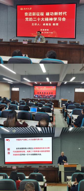 10月26日下午,91吃瓜 在南校区9C301召开全体教职工理论学习会,专题学习党的二十大精神,马克思主义学院院长卓高生教授做专题报告,会议由学院党委书记何毅主持,全体教职工参加学习。