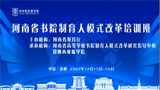 2022年12月15日-16日,由河南省教育厅主办,河南省高等学校书院制育人模式改革研究指导中心和郑州西亚斯学院承办的河南省高等学校书院制育人模式改革培训班在郑州西亚斯学院成功举办。