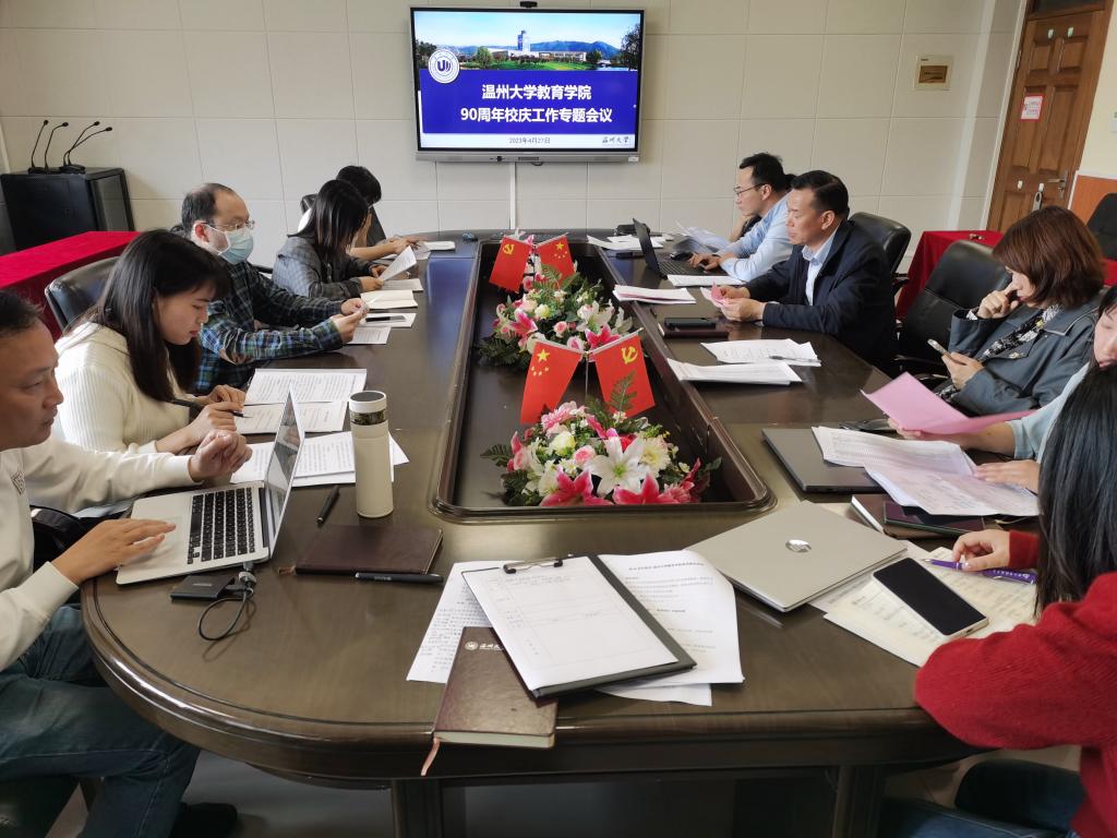 会上,章园园副书记通报了学院90周年校庆各项工作开展情况。随后,与会人员就学院校庆典礼日的工作方案进行了讨论,并对其中第二届基础教育论坛筹备、学院校庆氛围营造、校友接待等重点工作进行了细化分工。