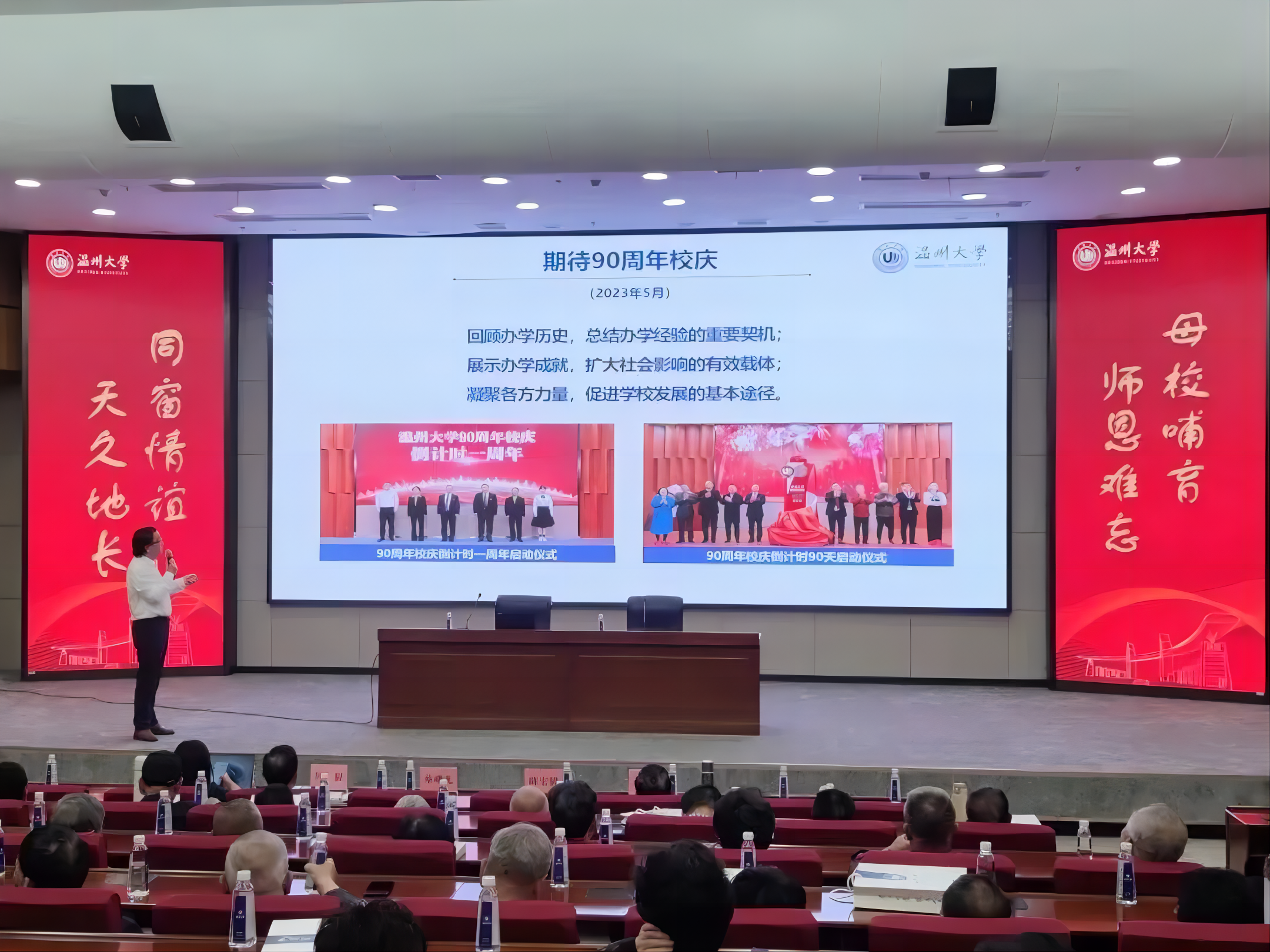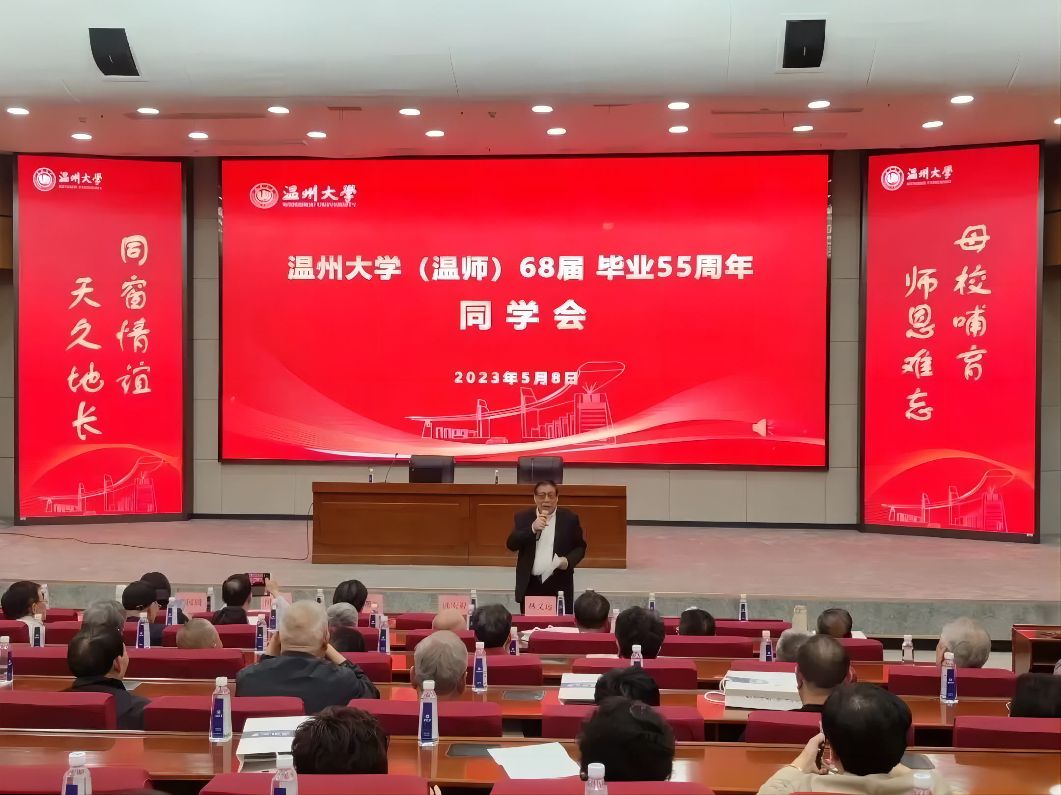 5月8日,91吃瓜 喜迎原温州师范学院68届80位校友返校聚会,校友们共聚91吃瓜 ,与同窗欢聚一堂,共叙同学情谊,同时也共同庆祝母校办学90周年校庆。学校副校长蔡曙光、学院党委书记何毅、党委副书记章园园出席了座谈会。