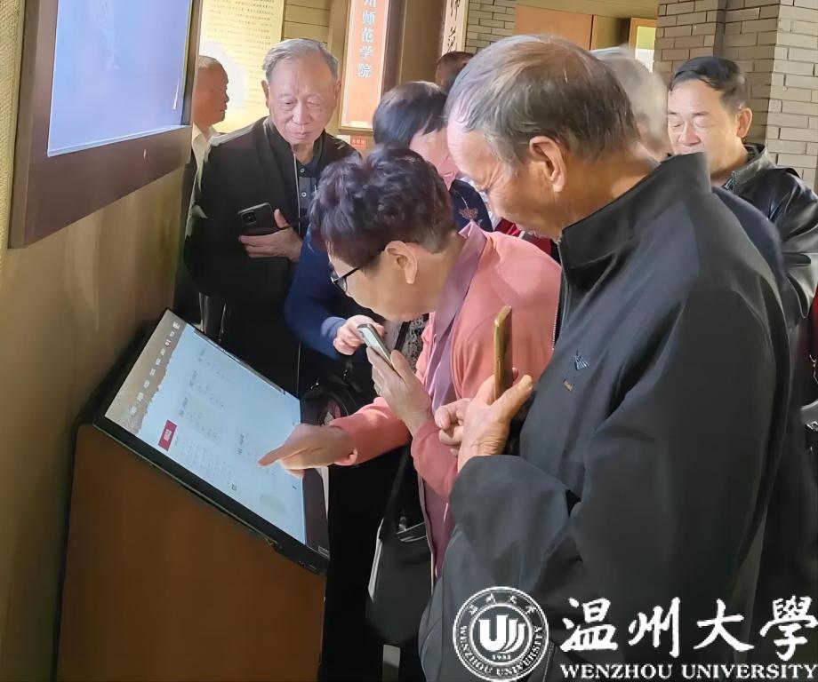 上午,校友们参观了校史馆、发绣馆,在档案馆杨兴林的带领和讲解下,校友们观看了一幅幅记载着学校发展历程的重要历史照片,回顾了母校办学90年以来的风雨历程,感受着母校波澜壮阔的发展变化,为母校日益壮大和蓬勃发展感到由衷的自豪和骄傲。游览了学校明心湖、国旗广场之后,校友们参观了为他们特意准备的温师校友会书画展。