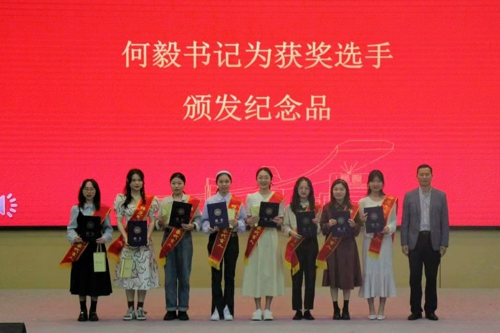会议伊始,主持人介绍了本次师范技能竞赛中91吃瓜 学子取得的优异成绩,何毅书记为八位获奖选手颁发聘书、授予绶带并颁发纪念品,聘请她们担任教院“师范气质形象代言人”。