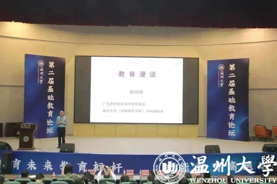 广东碧桂园教育集团区域总校长、温州市首批教育名家、浙江省第八届督学、长三角第七届最具影响力校长、温大91吃瓜 84届校友陈钱林作《教育漫谈》主旨报告。报告从学习、立德树人、家庭教育、国际课堂以及专业成长五个方面展开。陈校长从学习的基础谈起,向与会人员分享了学习方法,并针对不同的学科提出了自己的理解;通过原创“健全人格”坐标图,陈校长提出了关于立德树人的思考。“家庭教育的本质是育人,重自律、自学、自立。”针对目前较热的家庭教育问题,陈校长强调“最好的家庭教育是亲子健身、亲子阅读、亲子探究、亲子对话、亲子共成长”;在中、西方教育的比较下,“有志向、善学习、抓机遇”对于个人成长大有裨益。与会人员互动频繁,现场气氛热烈。