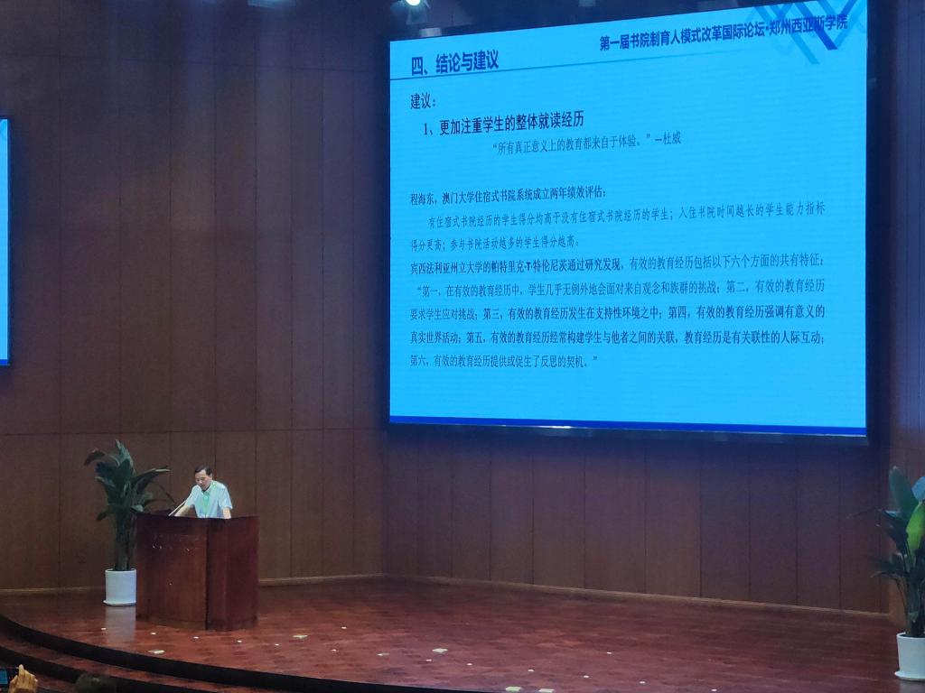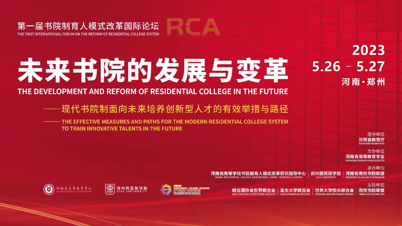为深入贯彻落实党的二十大会议精神,进一步总结书院发展经验,加强各高校书院间的交流互促,深化书院制改革的内涵式发展,促进创新人才培养。“第一届书院制育人模式改革国际论坛”于2023年5月26日-27日在郑州西亚斯学院举办。本届论坛由河南省教育厅指导,河南省高教学会主办,河南省高校书院联盟、省高校书院制育人模式研究指导中心等单位承办,联合国协会世界联合会、亚太大学联合会、世界大学校长联合会、高校书院联盟等作为学术支持单位,论坛邀请了来自清华大学、复旦大学、西安交通大学、华东师范大学、南方科技大学、英国牛津大学、德国欧洲应用技术大学、美国福特海斯州立大学、美国内华达大学、英国雅顿大学及麦可思公司等国内外知名高校书院/住宿学院的专家和管理者进行探讨交流。