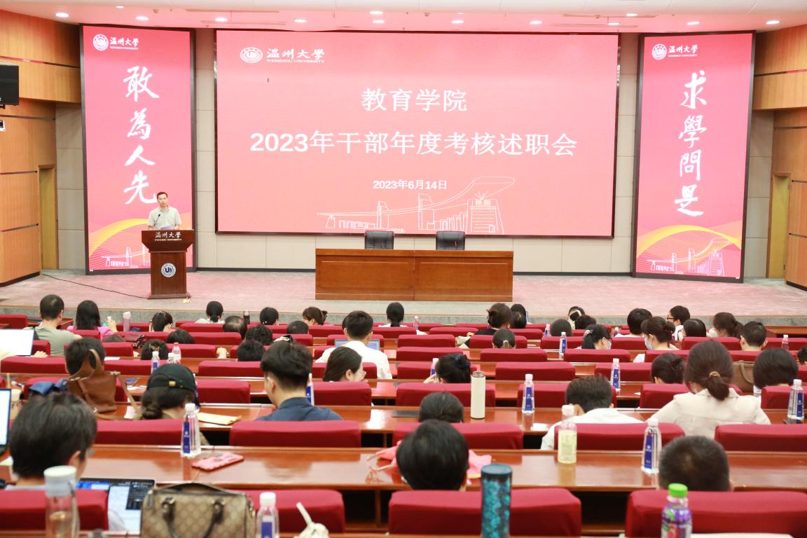 6月14日下午,91吃瓜 2023年干部年度考核述职会在育英图书馆二楼报告厅召开,学院领导班子及全体教职员工参加本次会议。