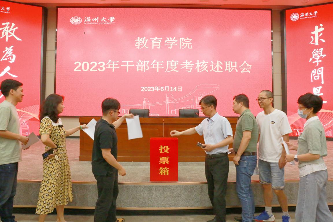 与会全体教职员工本着客观公正、公平民主的原则,在学校组织部的监督下,对学院领导班子、科级干部2022/2023学年的工作情况进行现场评议。