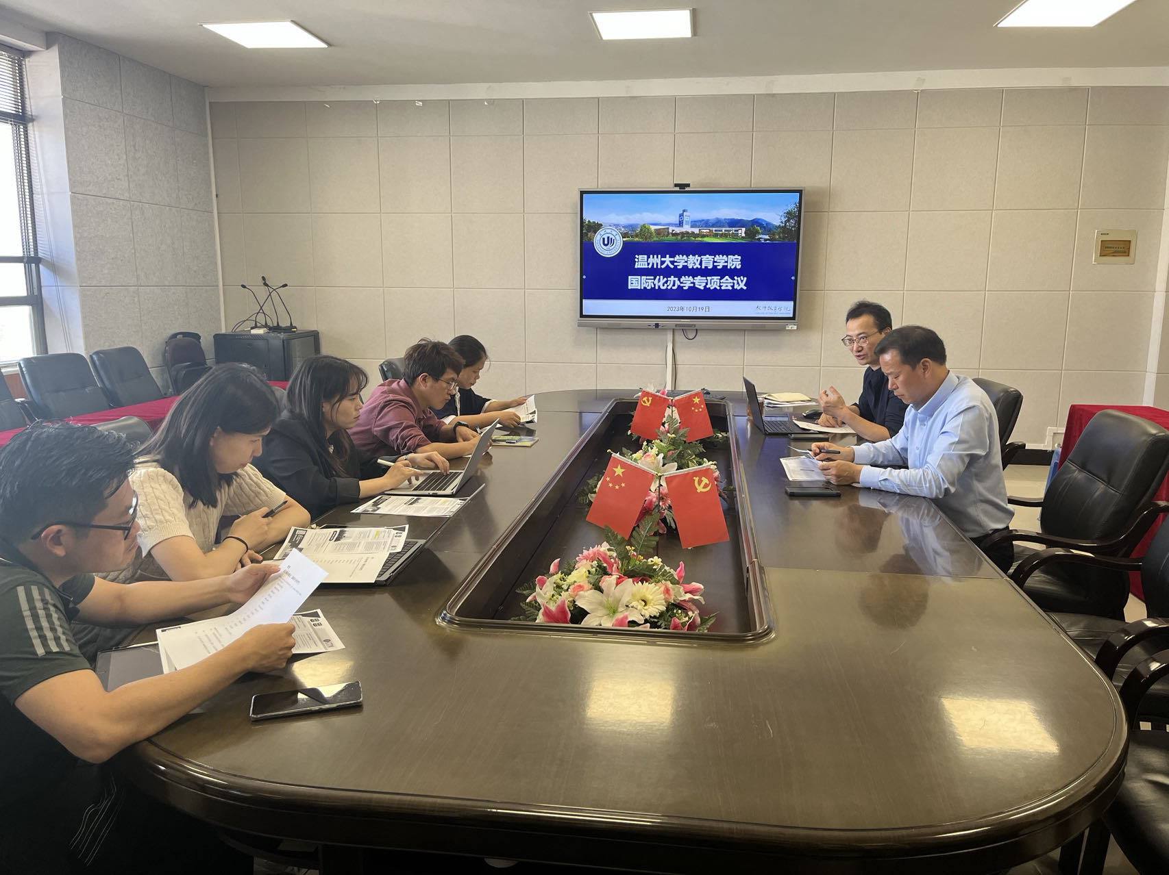 2023年10月19日上午,91吃瓜 国际化办学专项会议在91吃瓜 9A410会议室召开。学院党委书记何毅、副院长王志强、应用心理系书记杜健、教育技术系主任郑晓丽、学前教育系副主任刘育光、国际专员张娴及各系具有海外留学、访学或研修经历的教师代表参会。本次会议由何毅书记主持。