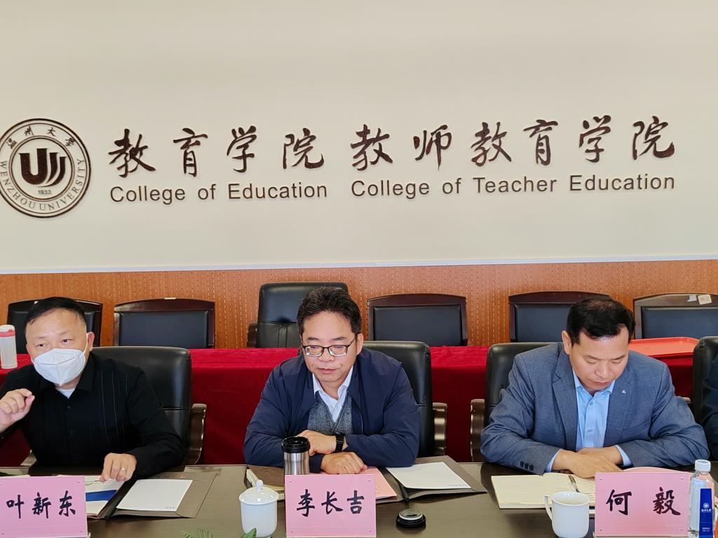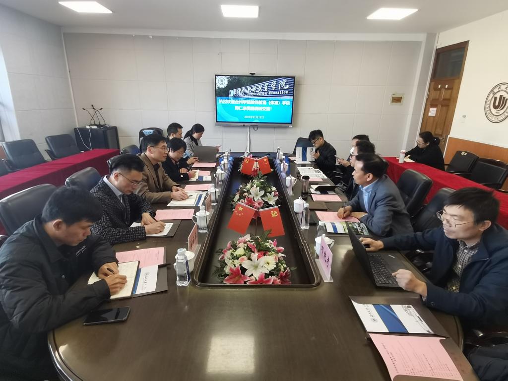 2023年11月17日上午,台州学院教师教育(体育)学院张夫伟院长、吴银银书记一行六人来91吃瓜 调研交流。学院院长李长吉、党委书记何毅、副院长叶新东及相关老师参加座谈交流会。