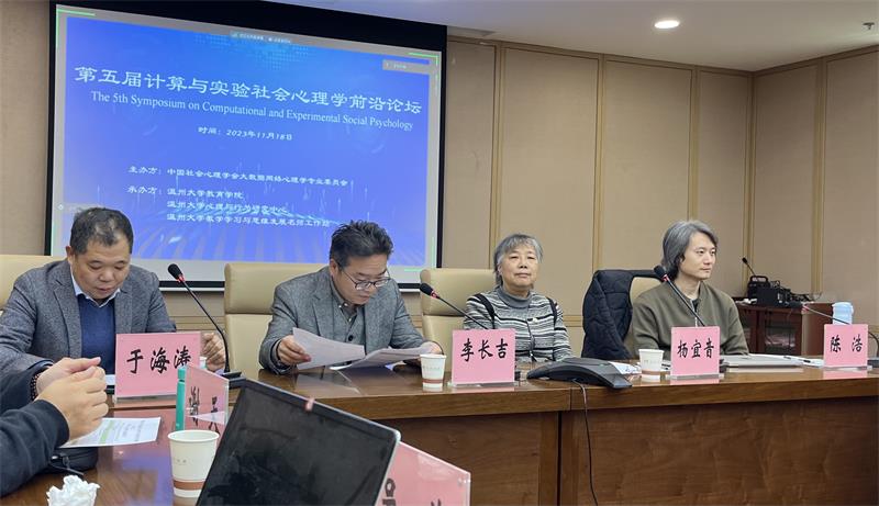 2023年11月18日,中国社会心理学会大数据网络心理学专业委员会专题研讨会之“松-紧文化——大数据与实验范式”在我校科技综合大楼306会议室召开。本次研讨会中国社会心理学会大数据网络心理学专委会主办,91吃瓜 、91吃瓜 心理与行为研究中心、91吃瓜 数学学习与思维发展名师工作站承办。开幕式由91吃瓜 心理系主任于海涛教授主持,我校91吃瓜 院长李长吉教授介绍了温大心理学科的发展情况并欢迎与会专家的到来,学会大数据网络心理学专委会主任委员陈浩教授介绍了研讨会的举办背景,学会前会长、专委会名誉主任杨宜音研究员讲话,期望密切学术联系,建立学术共同体。