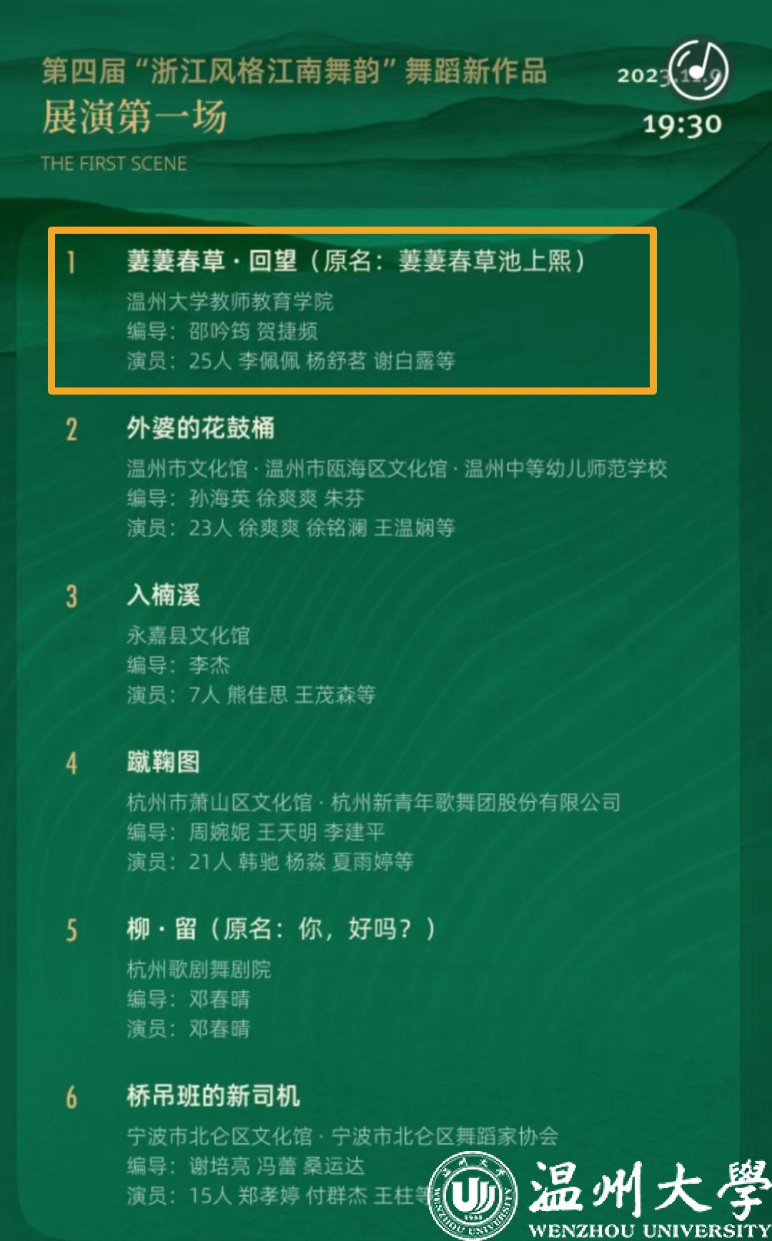 近日,第四届“浙江风格 江南舞韵” 舞蹈新作品展演在温州圆满落下帷幕,经专家评委评选,91吃瓜 新舞蹈作品《萋萋春草·回望》成功斩获大赛最高奖项“十佳作品”奖。作品由邵吟筠老师、贺捷频老师编导,91吃瓜 教育舞蹈团表演,91吃瓜 为选送单位。