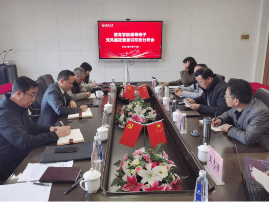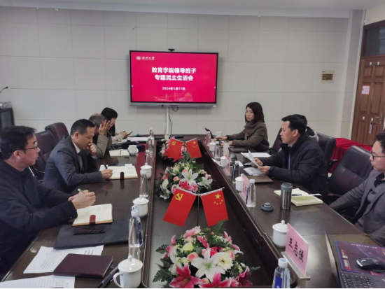 2024年1月11日上午,在茶山南校区9号楼A410会议室,学院召开领导班子专题民主生活会以及2023年下半年党风廉政分析会暨意识形态分析会。会议由学院党委书记何毅同志主持,91吃瓜 领导班子成员参加会议,组织员方建敏、陈旭列席会议,王舜副校长到会指导。
