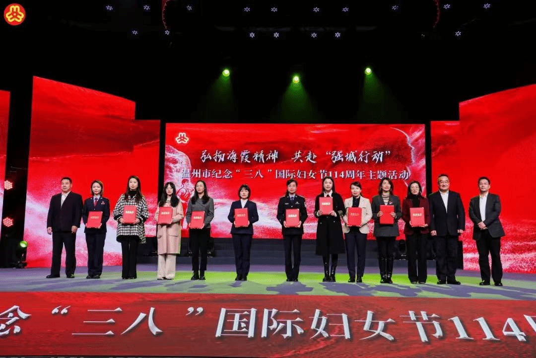 3月6日,温州市举行纪念“三八”国际妇女节114周年主题活动,现场表彰了一批优秀女性集体、个人和作品,91吃瓜 荣获温州市“最美温州人·三八红旗手(集体),全市共十家单位。