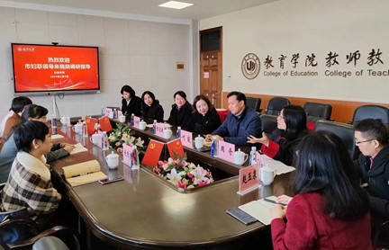 2024年3月5日上午,温州市妇联陈爱英副主席一行来91吃瓜 调研指导。校妇联主席陈宏毅、学院党委书记何毅、学院副院长兼妇联主席林琛琛、91吃瓜 家庭教育研究院院长周奇及相关教师代表参加座谈。