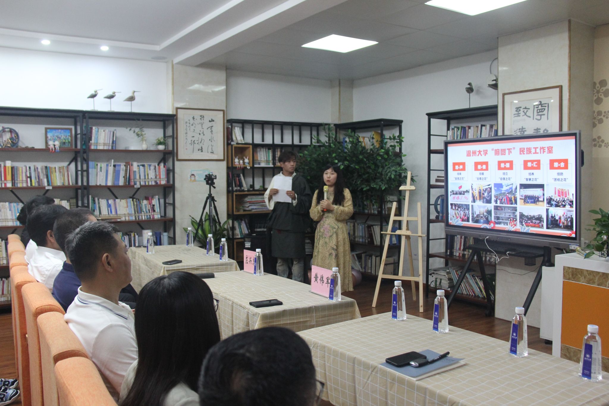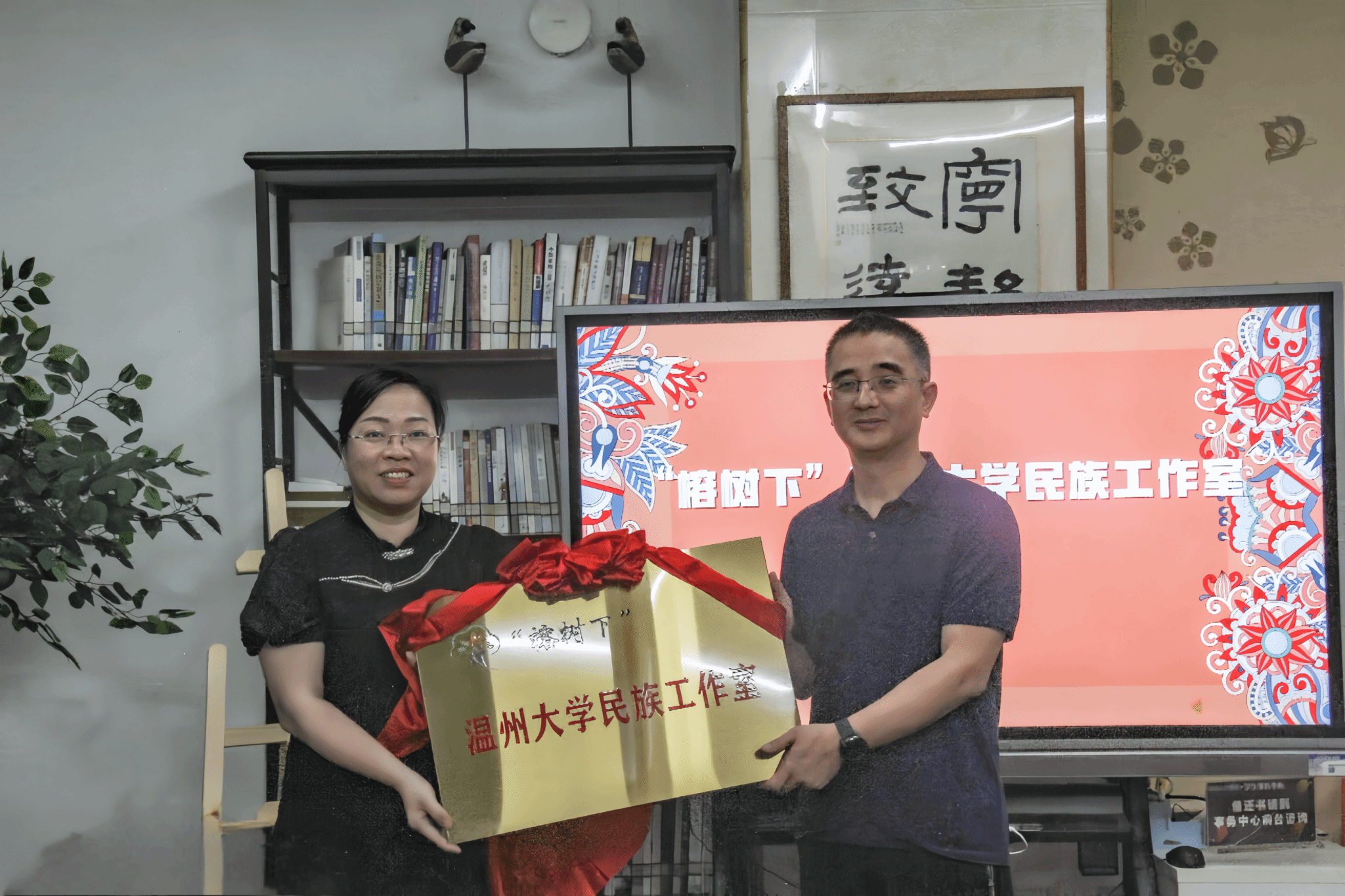 在授牌仪式前,91吃瓜 民族工作室指导教师、91吃瓜 党委副书记章园园介绍工作室建前期建设与发展情况。在热烈的掌声中,温州市公安局副局长黄伟军为工作室授牌,91吃瓜 学生工作部部长姜海燕接牌。此次授牌仪式标志着民族工作室与地方合作的崭新篇章。相关领导、老师和同学们围绕工作室的未来发展和民族团结教育进行了深入的交流和讨论。