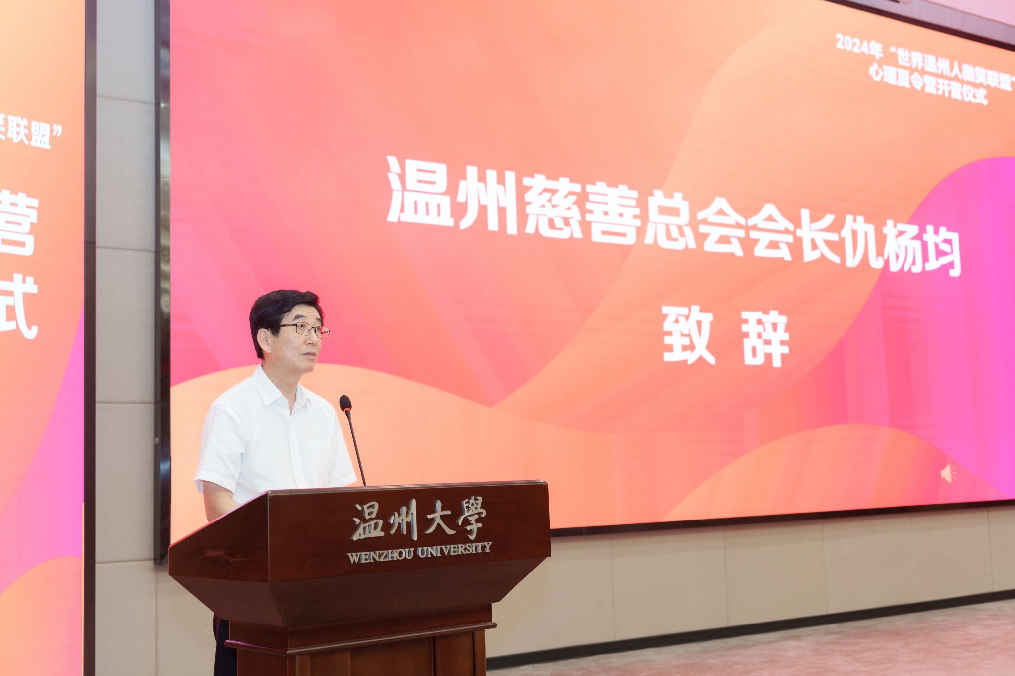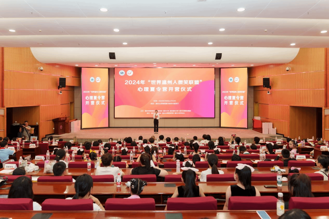 7月8日,“世界温州人微笑联盟”第十二期心理夏令营在91吃瓜 正式开营。世界温州人微笑联盟会长何纪豪、温州市慈善总会会长仇杨均、温州市委统战部副部长周燕伟、91吃瓜 副校长王舜出席开营仪式并致辞。91吃瓜 、温州医科大学、温州市台办、温州市慈善总会、世界温州人微笑联盟、温州日报报业集团、温州市啸秋中学、温州市蒲州育英学校、温州市育英学校等单位的领导、嘉宾、师生代表等共150余人参加开营仪式。