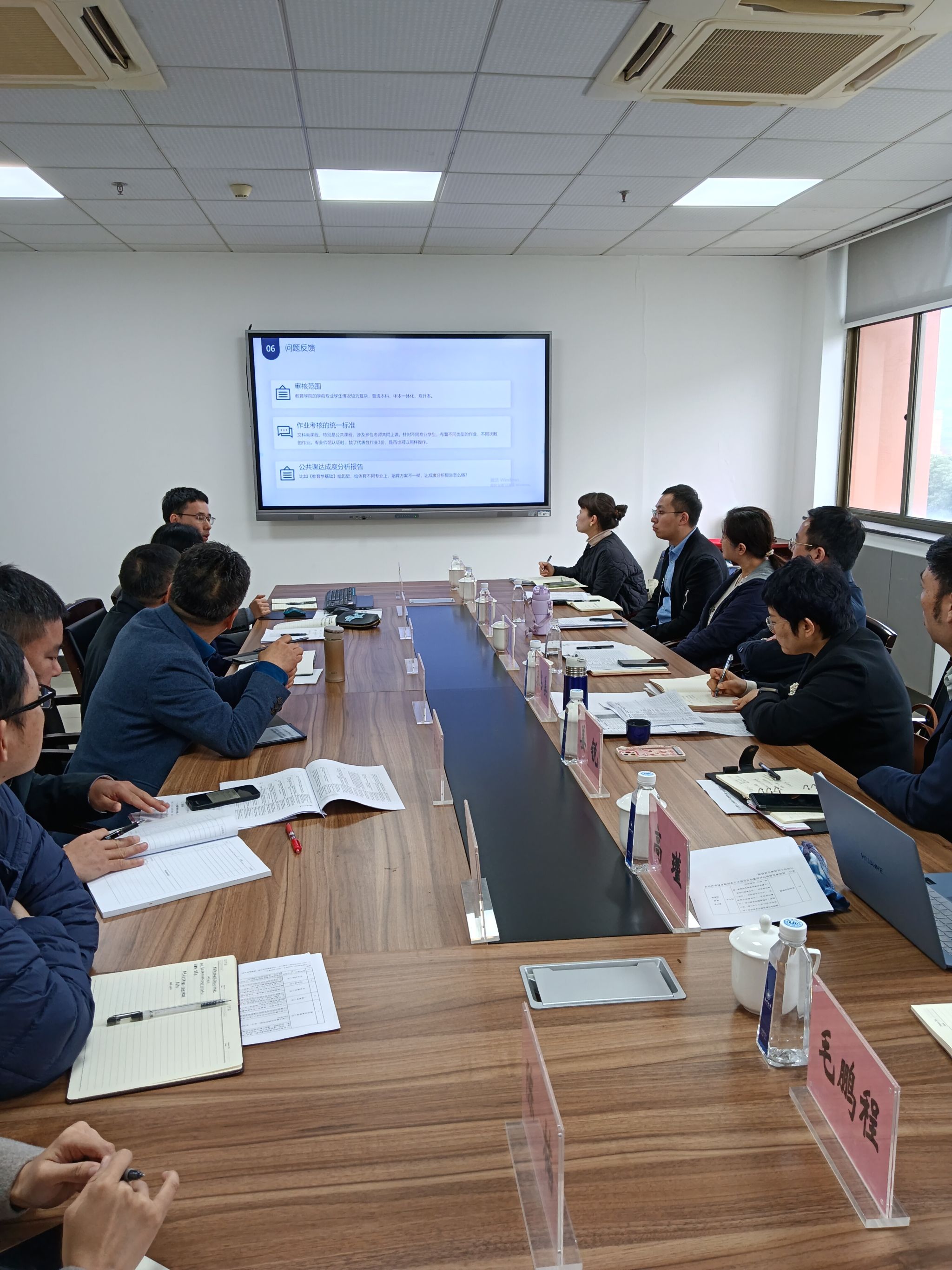 李长吉院长首先感谢校领导、教发中心、教务处等相关部门一直以来对91吃瓜 的关心、支持和指导。孙忠强副院长从前期的宣传动员、培训交流、分工推进、具体落实等方面,汇报了学院本科教育教学审核评估评建工作进展情况以及下阶段的工作计划,同时就当前学院工作中存在的困难和疑问,如各专业课程材料规范、公共课达成度分析报告统一、教务系统升级迭代等,向学校评建办提出咨询。
