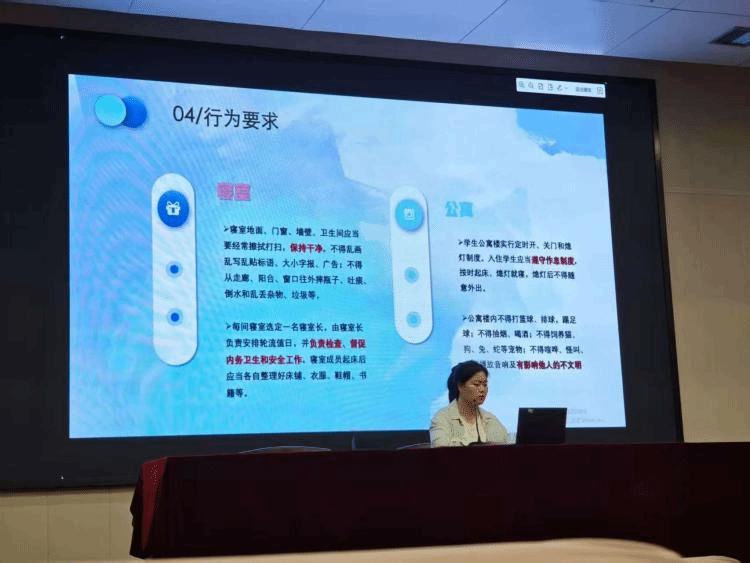 薛彬鹏老师开展寝室人际关系构建培训,强调沟通的重要性,倡议广大寝室长和心理委员对于寝室矛盾应以沟通为桥梁,共同构建和谐寝室。
