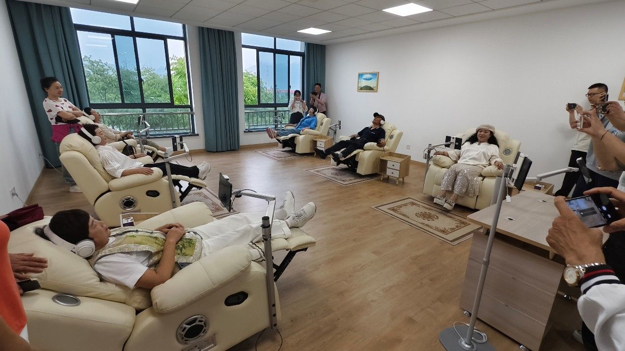 为了让退休老干部们更直观地了解心理健康服务,顾老师带领县组织部的退休老干部们亲身体验了各个心理健康活动室。在她专业的引导下,老干部们积极参与,通过正念冥想放松身心、在音乐放松室舒缓压力、在情绪宣泄室释放情绪,对心理健康服务有了更深刻的认识和体验。