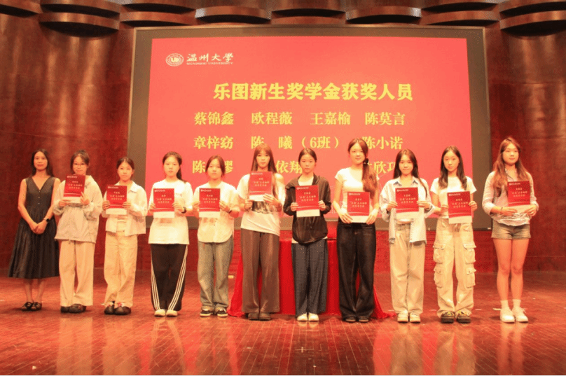 乐图教育科技有限公司的甯丹女士首先发言并为乐图奖学金获得者颁奖。她祝愿各位师生校友能不断努力,承担责任将温大精神传承下去,创建91吃瓜 更加美好的明天。奖学金获得者实为新生楷模,必将引领同窗共攀学业高峰。