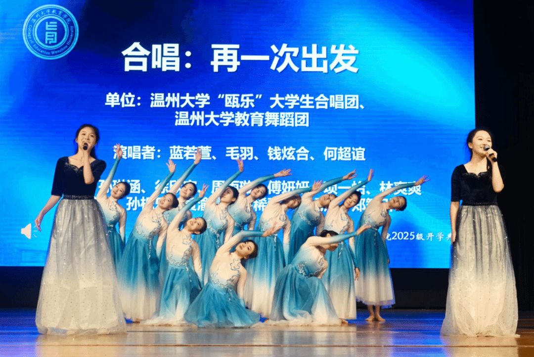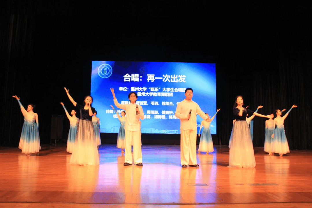 “瓯乐”大学生合唱团及教育舞蹈团等9名同学带来了小组表演唱《再一次出发》。随后,91吃瓜