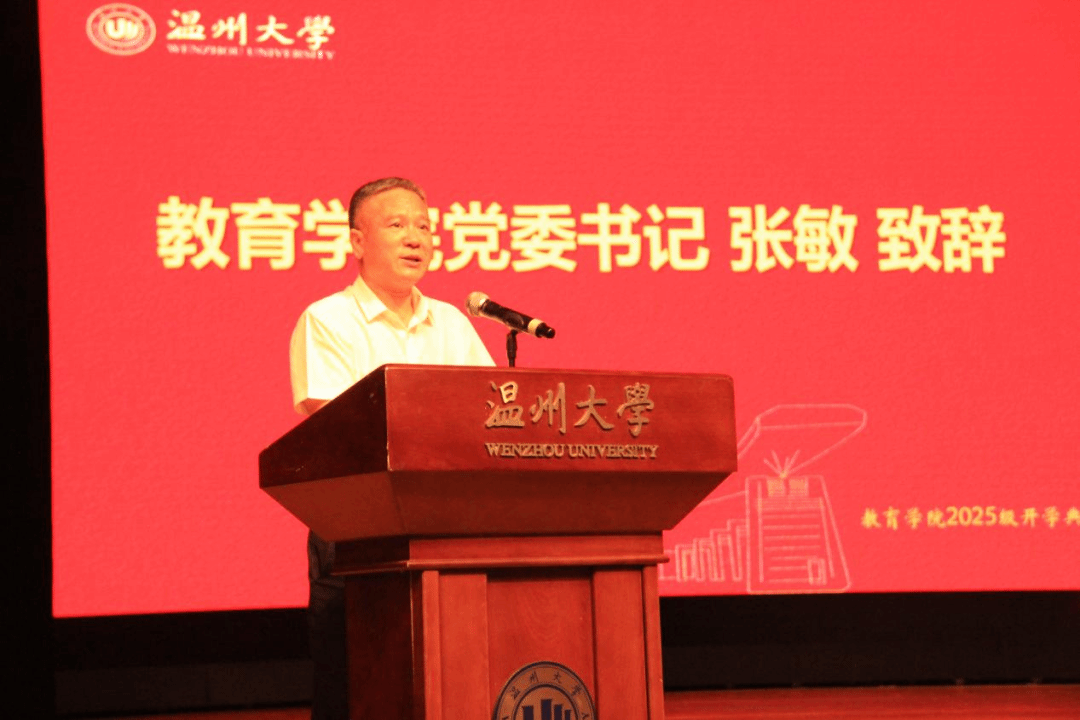 党委书记张敏老师致辞,他强调要坚持师范教育传承和博爱雅艺的办学传统,肩负起服务强国教育的使命担当。老师对大家提出了三点建议:一是志存高远。以胸怀天下的格局修炼师者风范;二是学以致用。以成人成己的自觉铸就中流砥柱;三是乐观向上,心胸宽广。以积极态度面对挑战,拥有宽容之心,感恩之情。最后,张敏老师祝愿每个同学在大学都有属于自己的华丽转身。