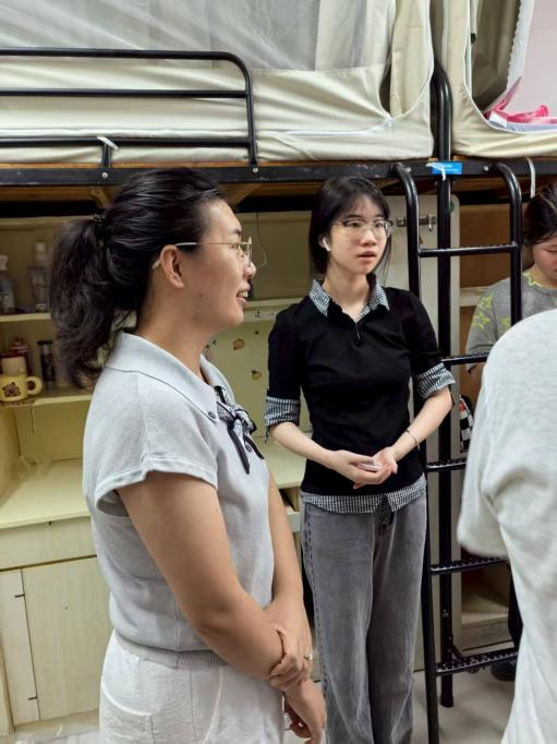 林琛琛副院长在走访D区寝室时组织新生相互介绍,围绕校园环境适应、专业期待、学习目标设定以及社团兴趣、室友关系等话题展开交流,鼓励大家主动适应大学学习与生活,遇到困难及时向学院反馈。