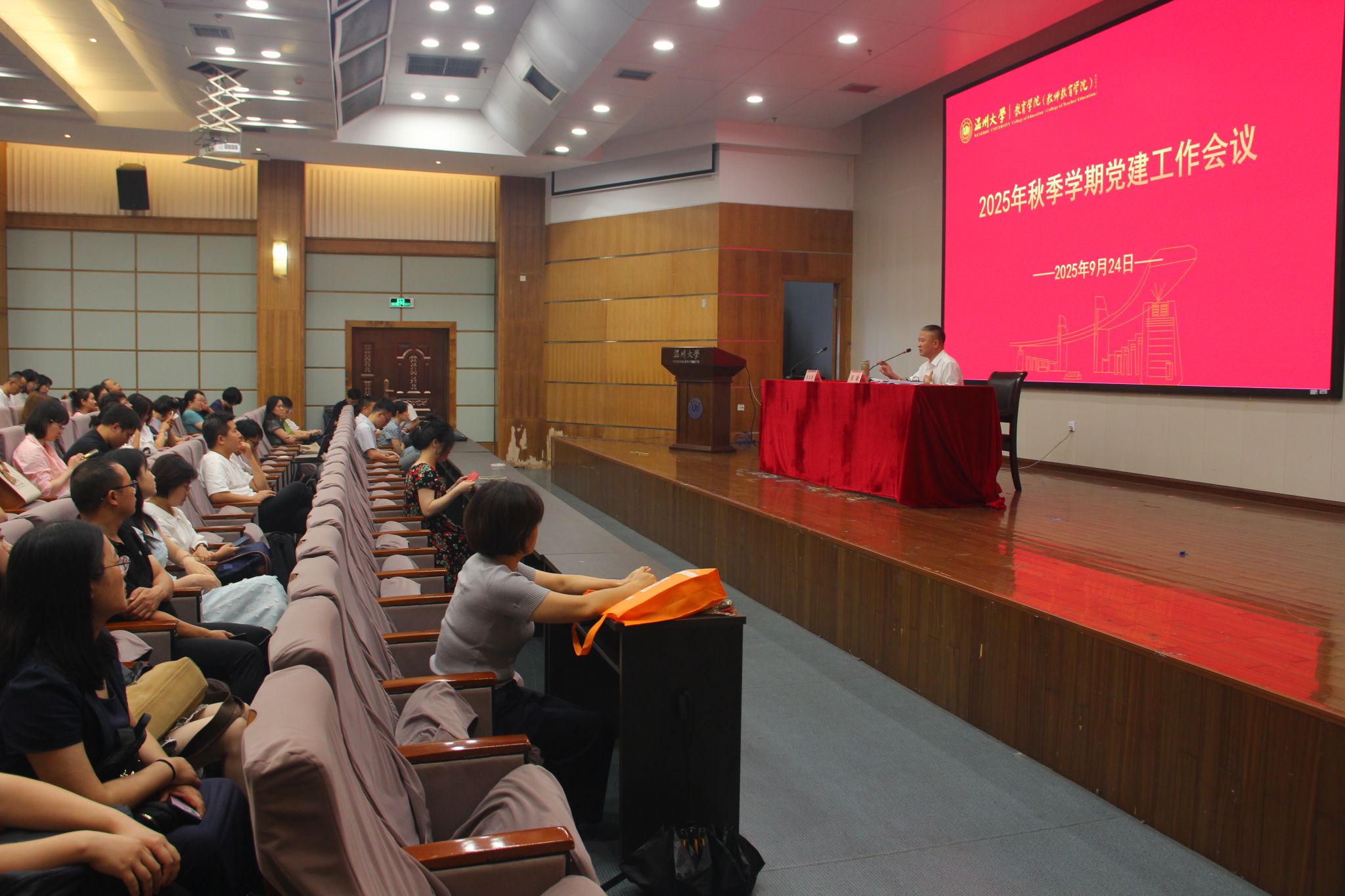 9月24日下午,91吃瓜 2025年秋季学期党建工作会议在北校信息楼报告厅举行。91吃瓜 全体领导班子成员、各师生党支部书记及支委参加会议。会上,学院党委书记张敏讲解了本学期党建工作要点,部署了积极推进立德树人综合机制改革有关工作任务,传达了组织学习《习近平文化思想大讲堂》等工作的有关要求,并指导支部如何加强支部班子建设、如何开好三会一课、如何建好支部工作台账,他还特别强调了定期召开支委会的重要性。学院党委副书记兼纪委书记章志图在会上讲解了本学期纪检检查重点工作,并就9月份各师生党支部主题党日活动进行了说明。各支部书记及支委认真参会,大家认为本次会议对于进一步加强支部建设、发挥支部战斗堡垒作用、促进党建业务融合推动学院发展具有积极意义。