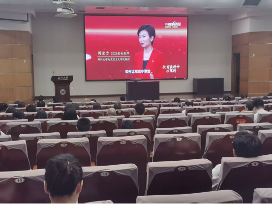会议首先开展师德师风常态化教育,全体教职工集体观看《最美教师周荣方:行走思政课点燃青年信仰》专题片。周荣方老师十五年如一日扎根教学一线,深入基层采集鲜活案例,精心打造“行走的思政课”,努力打破传统思政课的边界,使其成为广受关注的“国民课堂”。她的先进事迹生动诠释了新时代“四有”好老师的崇高品格,为全体教师树立了师德典范,激励大家坚守教育初心,担当育人使命,在教育事业中砥砺前行。
