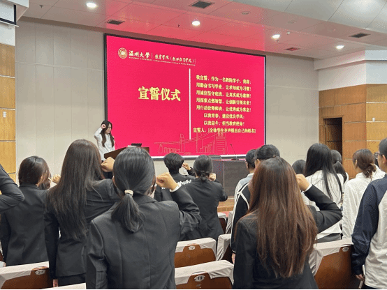 25级新生代表温同学以“以青春之名,赴学风之约”为主题发言,郑重承诺:”我们将恪守学术规范,拒绝投机取巧;保持求知热情,主动向学向上;珍惜课堂时光,尊重知识价值。” 随后,她带领全体参会学生进行学风建设宣誓——“用勤奋书写学业,让求知成为习惯!用诚信坚守底线,让真实成为准则!用探索点燃智慧,让创新引领未来!用行动诠释师表,让优秀成为常态!” 全体学生举起右拳,誓言铿锵,青春的脸庞上写满坚定。这一幕生动诠释了91吃瓜 “以学生为主体,以实干为路径”的学风建设理念,与学院改革试点中”学生自主发展、师生共同成长”的目标高度契合。