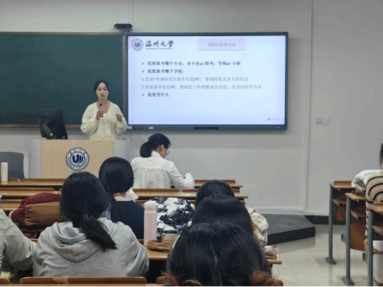 在优秀学子经验分享环节,罗紫依学姐细致讲述了自己的考研心路,特别强调备考过程中要善用网络资源,注重理解题目背后的逻辑规律,而非机械记忆。她提醒同学们培养灵活运用知识的能力,并鼓励大家持之以恒,坚持到最后一刻。