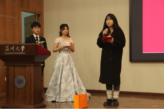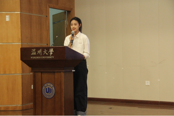 随后,章志图为“优良学风班”“学习标兵”获奖代表颁奖。德育标兵代表潘奕瑶同学,以温州“山海协作”发展规划为切口,结合家乡“十四五”到“十五五”的变迁,深情讲述青年在区域协调发展中的责任——“从课堂到乡土,从理论到实践,我们用脚步丈量责任,用思考回应时代”,将德育具象为服务社会的使命担当。学习标兵代表叶品妤同学,从智育方面分享制定计划、课堂专注、每日复盘的“三阶学习法”,展现的不仅是智育成果,更蕴含着“自律自强”的德育底色。