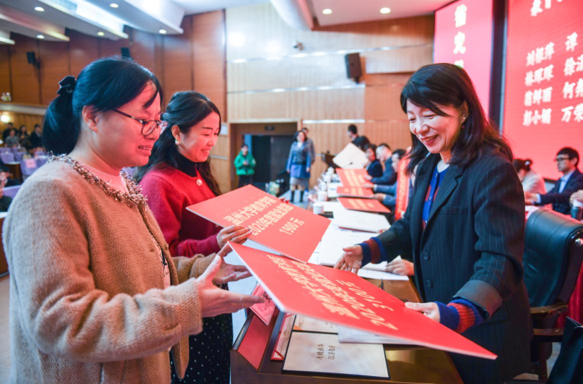 会议在雄壮的国歌声中开幕。在欢快喜庆的音乐中,学院领导为2020年度91吃瓜 院长特别奖获得者,91吃瓜 优秀共产党员、优秀教师、优秀教育工作者、优秀班主任、优秀辅导员、抗击疫情先进个人,91吃瓜 就业工作奖励获得者,校和院工会先进获得者,91吃瓜 优秀培训项目、优秀培训讲师,省优秀示范团支部、省高校优秀团支部,省市优秀辅导员等进行颁奖。