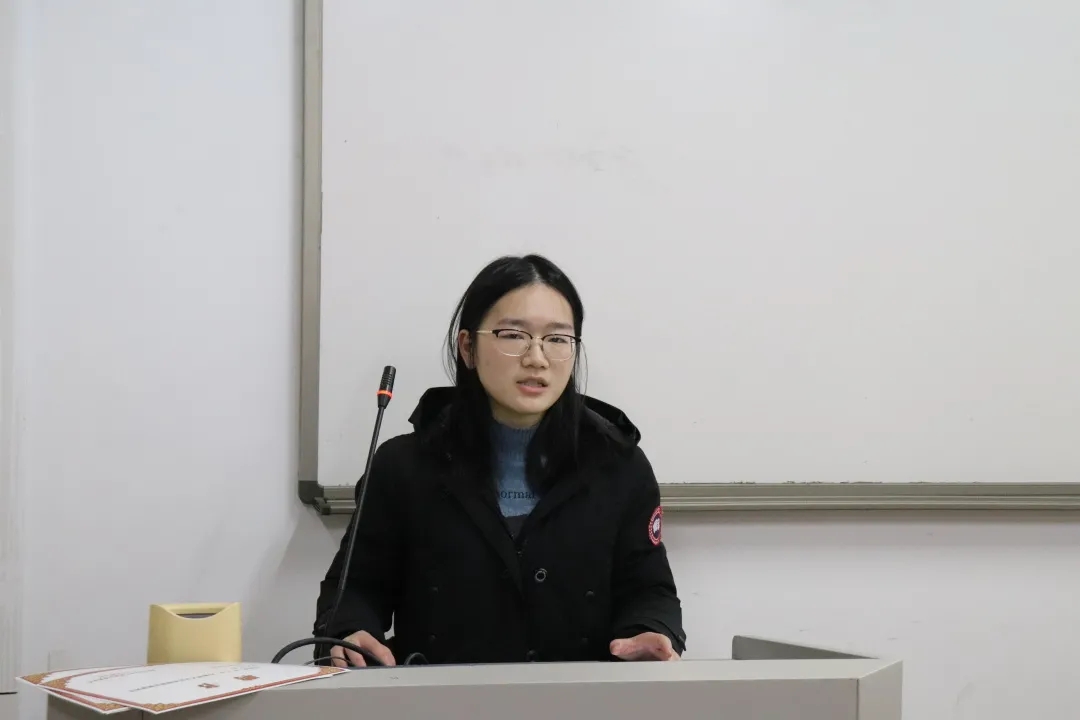 副主任徐夏向大家表达了感谢并提出反思,她提到在党服的成长,离不开老师的信任以及党服小伙伴们的积极工作,并希望在下学期的工作中能够提升创新能力。