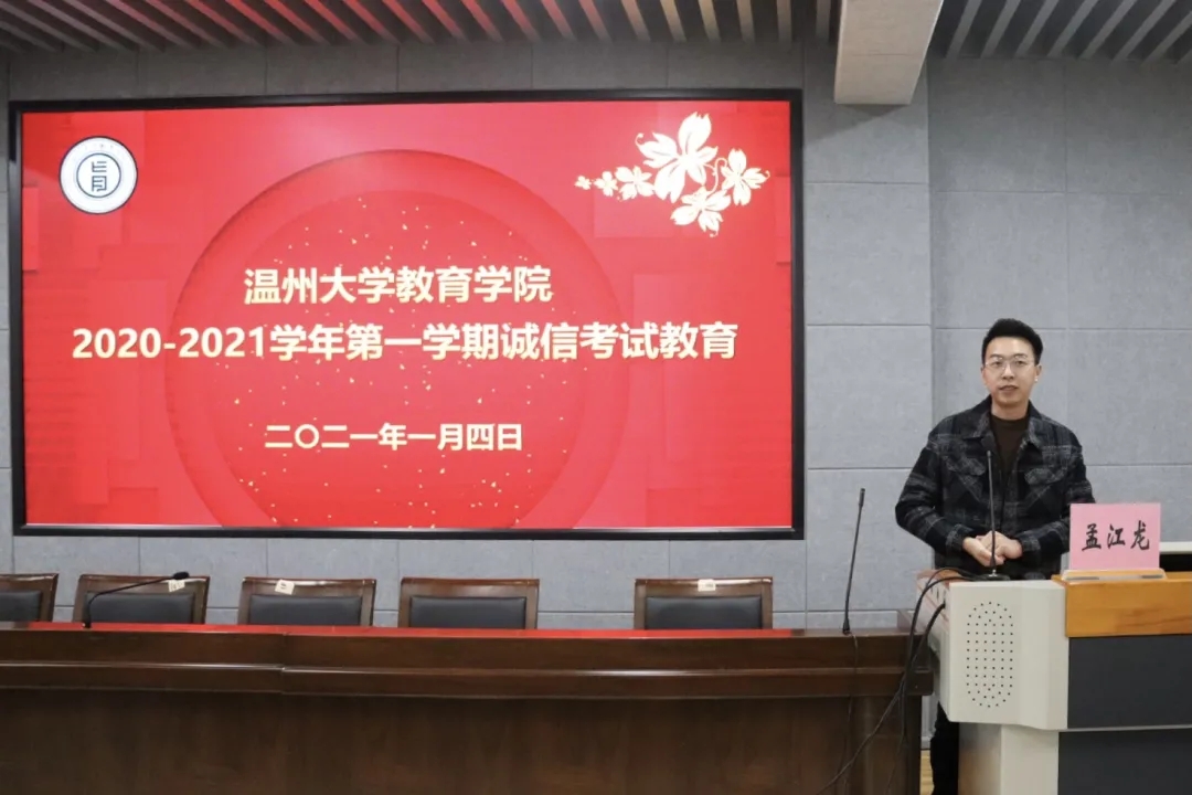 四季花开花谢,期末悄然而至,这不仅仅是知识的较量,更是诚信品质的测验。1月4日中午,2020-2021学年第一学期诚信考试教育于9-C301启动。出席本次会议的有学院党委副书记章园园,学工办辅导员侯利兵、孟江龙、黄姣、王恬恬、杨静,各班班长、学习委员、学生代表,本次会议由孟江龙老师主持。