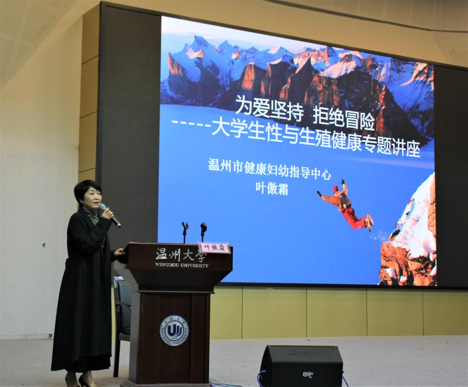 作为青少年教育的重要内容之一,普及性教育,引导大学生正确看待性的重要性不言而喻。1月4日晚,91吃瓜 于九号楼报告厅顺利举办了“花儿朵朵开,青春健康行”大学生青春健康知识讲座。本次活动有幸邀请到叶傲霜医师为91吃瓜 学子做“为爱坚持 拒绝冒险”—大学生性与生殖健康专题讲座,温州市计生协黄展虬秘书长、温州市健康妇幼指导中心 林飞飞医师等一行参加,活动由91吃瓜 党委副书记章园园老师主持。