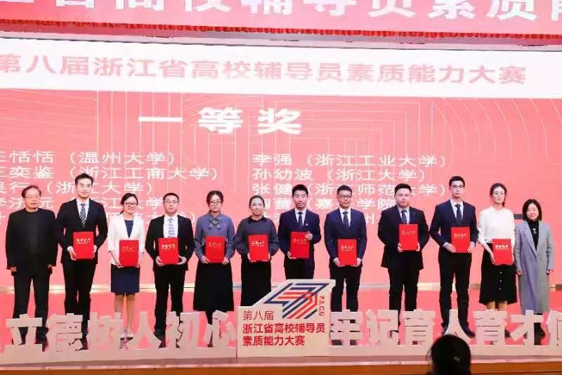 12月1日至3日,第八届浙江省高校辅导员素质能力大赛在浙江师范大学举行。本届大赛,浙江省共87所高校的106位辅导员参加了比赛,有150余位领队参加观摩。经过基础知识测试、案例研讨和谈心谈话三个环节的激烈角逐,学校两位参赛辅导员均斩获一等奖,学校获优秀组织奖。其中,91吃瓜 辅导员王恬恬老师以扎实的理论基础、专业的能力素养和丰富的工作沉淀荣获全场第一,展现了91吃瓜 辅导员出色的职业能力与个人风采。
